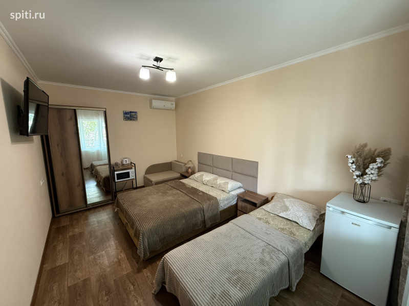 ОТКРЫТО БРОНИРОВАНИЕ НА СЕЗОН 2026 СУДАК. ГОСТЕВОЙ ДОМ "ПРОХЛАДА" 8 МИНУТ ДО МОРЯ. Гостевой дом расположен на улице Бирюзова, по праву считающейся одной из лучших в Судаке для отдыха! До моря (пляж бесплатный) всего 8 минут, до Кипарисовой Аллеи (центра курортной жизни Судака) менее 5 минут. Рядом продуктовые магазины, рынок и кафе. Всё в шаговой доступности. Всего 7 номеров в доме, а значит спокойный отдых при минимуме соседей. Номера 2-х, 3-х, 4-х местные. В номере душ, туалет, телевизор, холодильник, кондиционер, электрочайник, WiFi. Напротив каждого номера отдельный столик для отдыха. Кухня, стиральная машина, мангал. Ухоженный двор, утопающий в зелени винограда, деревьев граната и множества цветов. На территории также расположен небольшой двухкомнатный дом под ключ. В доме две комнаты, кухня, санузел, беседка с обеденным столом. Холодильник, телевизор, кондиционер, стиральная машина, микроволновка, фен, утюг, Wi-Fi, холодная и горячая вода постоянно. Дом рассчитан до 6 человек. Фото дома высылаем по запросу. Своим гостям предоставляем прокат скутеров и велосипедов. Также предлагаем индивидуальные (на 2-3 человека) морские прогулки и рыбалку на собственной моторной лодке в красивейших бухтах Меганома и Нового Света. Бесплатный трансфер с автовокзала Судака. Трансфер из Симферополя и других городов Крыма. Заезд после 12:00, отъезд до 11:00. Не подходит для шумных компаний, время тишины 23:00-8:00. Цены зависят от времени проживания и количества человек. Парковка: 1. возле дома на улице под нашей камерой 2. в 20 метрах от нас на бесплатной городской автостоянке 3. закрытая платная парковка в соседнем дворе Контактная информация: +79787007459 (МТС, MAX, Telegram) Олег http://vk.com/id292578613 alleg8@mail.ru Приятного Вам отдыха!